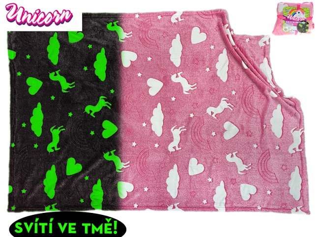 Unicorn deka 100x150cm s jednorožci ve tmě svítící 0m+ na kartě