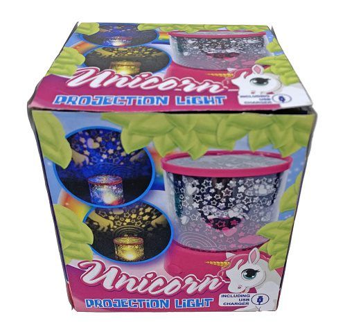 Unicorn lampička/projektor 12cm 360° na baterie se světlem měnící barvu v krabičce