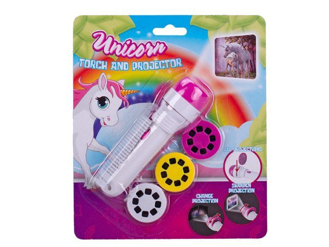 Unicorn projektorová svítilna 11,5cm na baterie se světlem 24 obrázků na kartě