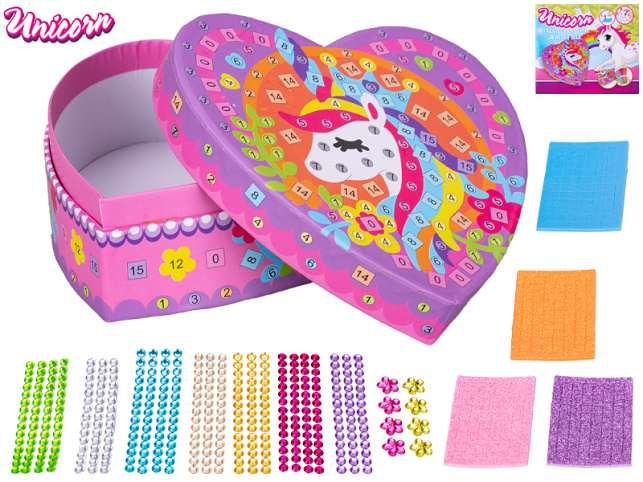 Unicorn sada lepení barevných kamínků na šperkovnici 13x12,5cm v krabičce