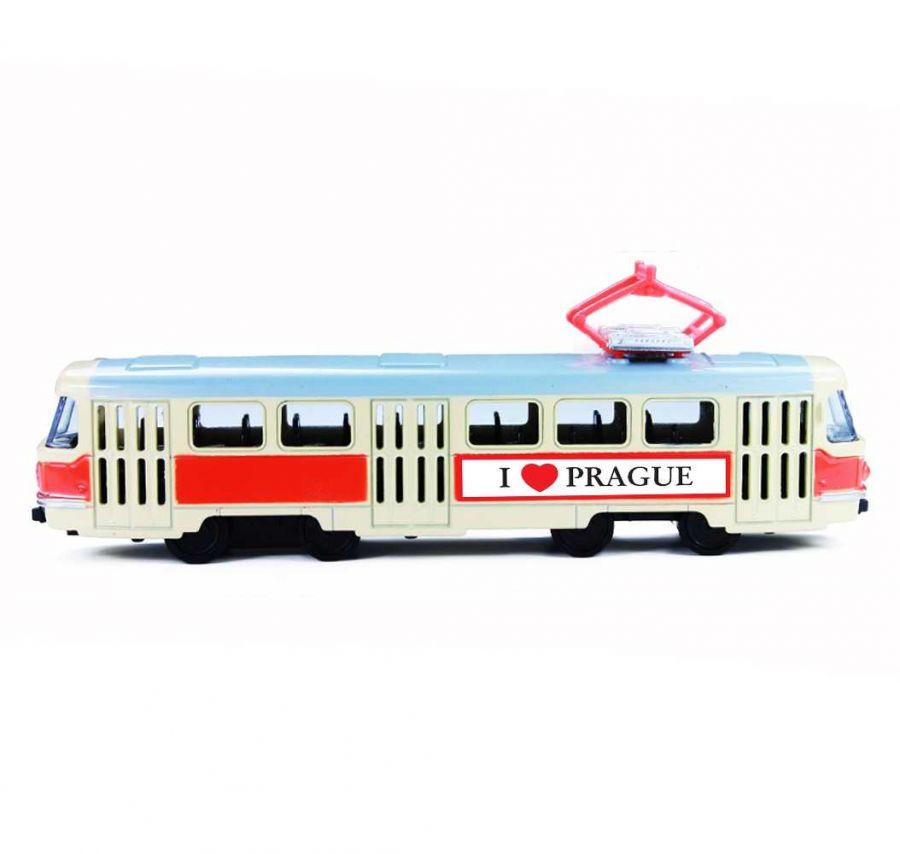 Unikátní kovová tramvaj 16 cm na zpětný chod PRAGUE