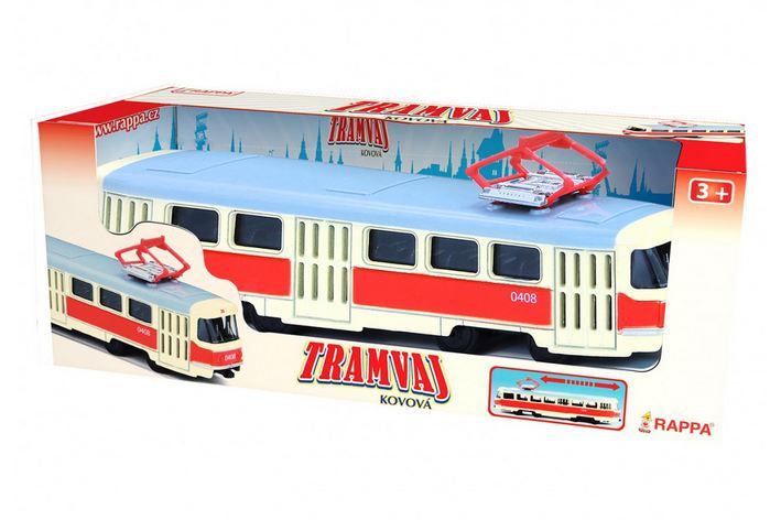 Unikátní kovová tramvaj 16cm na zpětný chod v CZ obalu (česká)