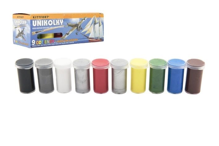 Unikolky modelářské barvy sada 9 barev + matný lak zdarma v krabičce
