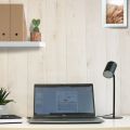 LED, nastavitelná intenzita světla, dotykové tlačítko, protiskluzová podložka proti poškrábání stolu, USB kabel, kov a ABS plast