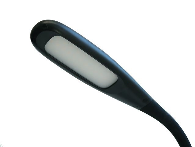 LED 450 lum, 5000 K, 1055 lux, 30000 hod, možnost nastavení teploty barev a intenzity světla, energeticky šetrná, základna a hlava 19 cm z ABS plastu, kovové rameno 38 + 23 cm s gumovým povrchem