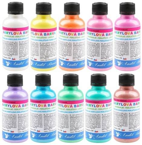 Univerzální akrylátové barvy perleťové odstíny, lesklé 50g Velmi kvalitní barvy, vhodné i na venkovní použití. Vodou ředitelná akrylátová barva na papír, kámen, dřevo, keramiku, plast, kov, ubrouskovou techniku... Naneste na suchý a čistý povrch. Po zaschnutí je barva matná a voděodolná. Obsah lahvičky: 40 ml. Vyrobeno v ČR