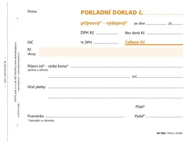- PAPÍRNICTVÍ / TISKOPISY / ÚČETNÍ A DAŇOVÉ DOKLADY / Příjmové doklady / A6 / OPTYS