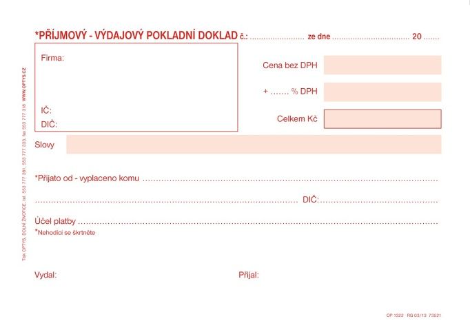 - PAPÍRNICTVÍ / TISKOPISY / ÚČETNÍ A DAŇOVÉ DOKLADY / Příjmové doklady / A6 / OPTYS