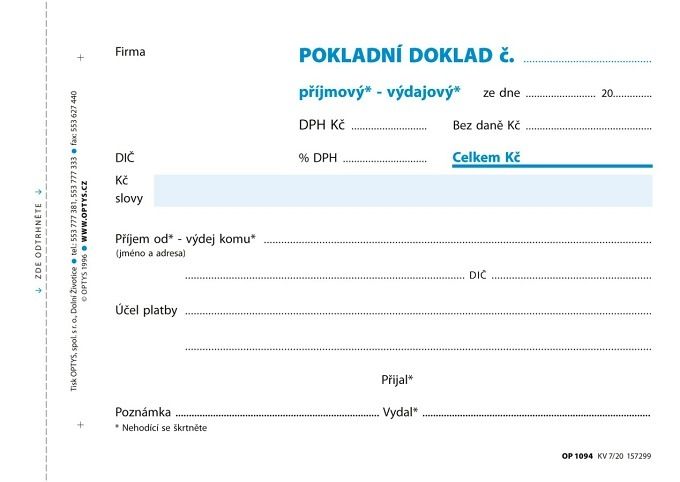 - PAPÍRNICTVÍ / TISKOPISY / ÚČETNÍ A DAŇOVÉ DOKLADY / Výdajové doklady / A6 / OPTYS