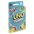 UNO Teams je nový způsob hraní této klasické hry! Hráči stále porovnávají barvy, čísla a symboly, ale místo toho, aby každý hrál sám za sebe, se spojí do dvojic a hrají společně o vítězství. Speciální karty a pravidla pomáhají spoluhráčům spolupracovat, ale oba hráči se musí zbavit všech karet ve svých rukou, aby vyhráli. A nezapomeňte, že až vám (nebo vašemu partnerovi!) dojde poslední karta, nesmíte zapomenout zakřičet „UNO!“.