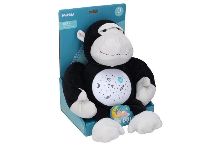 Usínáček opice. Velikost 30 cm. Režim - jen světlo nebo světlo s hudbou. Automaticky měnící se barva světla, 3 světelné efekty. Přepínač 3 polohy - vypnuto, noční režim, denní režim (hlasitější). 3xAAA baterie nejsou součástí.