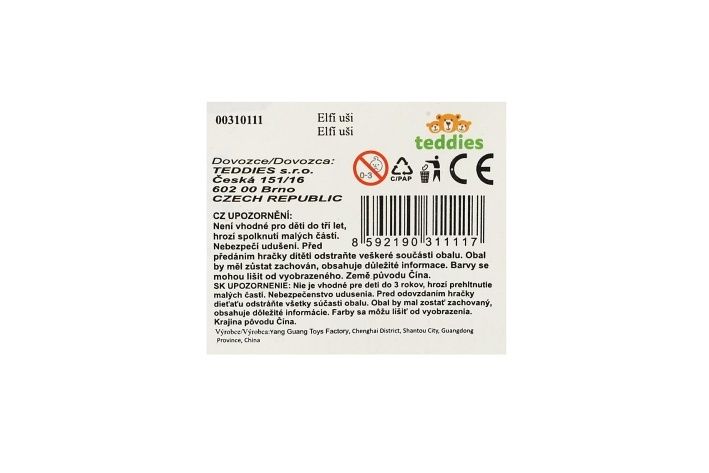 Uši/ucho elfí 2ks latex 12cm na kartě karneval