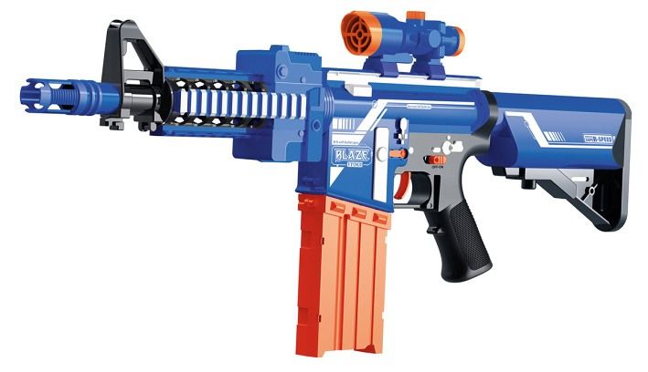 Blaze Storm je polo-automatická útočná puška speciálních vesmírných komand s prodlouženým zásobníkem na 12 nábojů a ohromujícím dostřelem! Stačí jen mačkat spoušť a jednotlivými výstřely kosit nepřátele!