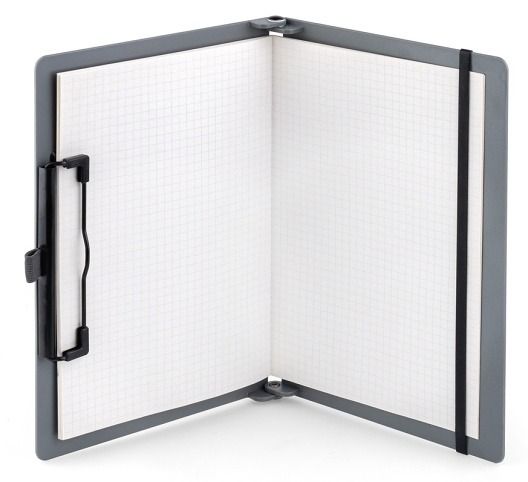 Pevné plastové desky formátu A4 s možností složení do formátu A5. Využitelné v nejruznejších provozech od výroby pres zdravotnictví až po školství. Pevný materiál umožní horizontální i vertikální psaní. Klip spolehlive udrží až 30 listu papíru gramáže 80 g/m2. Listy lze ve spodní cásti zafixovat pevným gumovým páskem, který umožní prípadne i vnejší pevné uzavrení desek pri více než 5 listech. Pevný bytelný plast v šedé matné barve. Elastické textilní ocko pro pripevnení pera. Prodloužená záruka 5 let. Oceneno Golden Pin Design Award. Rozmery v rozloženém stavu: 23,0 x 31,8 x 1,6 cm; rozmery ve složeném stavu: 23,0 x 16,5 x 2,0 cm.