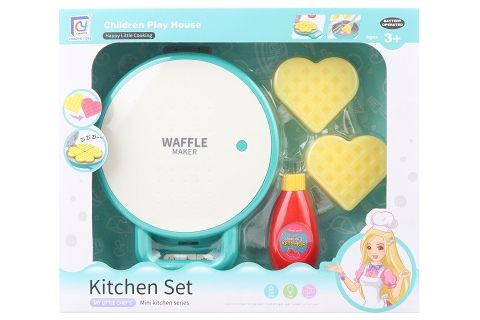 Plastový vaflovač na baterie. Vlož do vaflovače vafle a oni se ti během chvíle upečou (změní barvu). Po vyndání vaflí z vaflovače změní zpět barvu na původní). Vaflovač také vydává zuvky. Napájení na 3 AA baterie (nejsou součástí). Rozměry balení cca 31 x 26 x 7 cm. Věk 3+