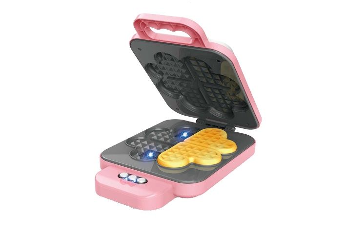Vaflovač s efekty. Velikost 15x22,5x5,5 cm. Obsahuje vaflovač a 4ks vaflí. Vafle během pečení změní barvu. Světelné i zvukové efekty. Baterie nejsou součástí. 3xAA baterie nejsou součástí.