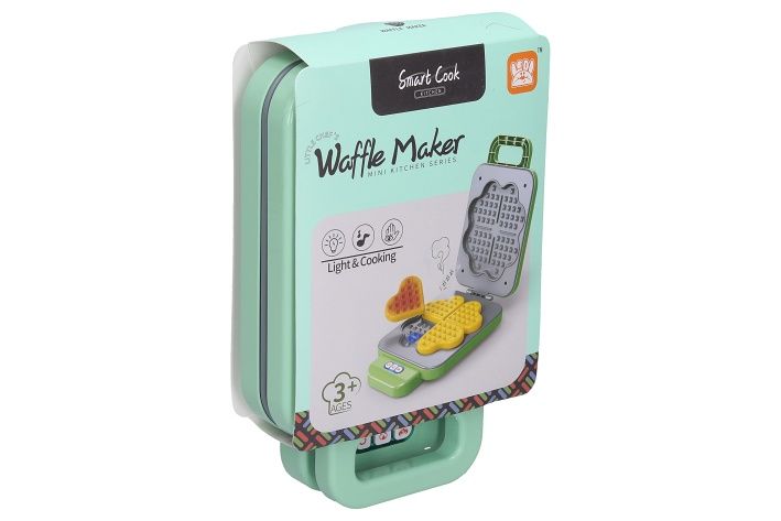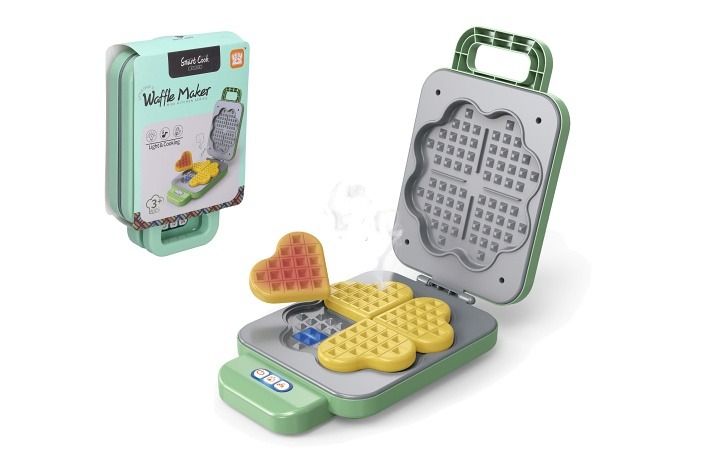 Vaflovač s efekty. Velikost 23 cm. Obsahuje vaflovač a 4 ks vaflí. Vafle během pečení změní barvu. Vydává světelné i zvukové efekty. 3xAA (1. 5V) baterie nejsou součástí.