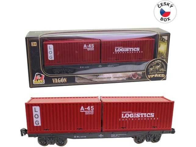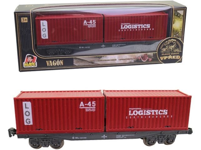 Vagón, kontejnerový, 25 cm. Rozšiř si svou železniční stanici o tolik vagónů kolik jen budeš chtít. Tou správnou volbou jistě bude realisticky vyhlížející kontejnerový vagón v nepřehlédnutelné červené barvě. Co pak asi za náklad skrývá? Hračka je určena pro děti 3+. Rozměr hračky je 24,8 x 4,7 x 7,3 cm. Rozměr balení: 28 x 6 x 10 cm. Materiál hračky je plast. Balení hračky je window box. Produkt je určený pro kohokoliv.