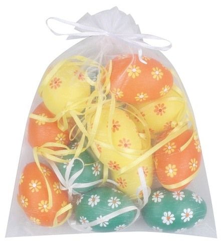 Vajíčka na zavěšení 6 cm, 12 ks v organzovém pytlíku