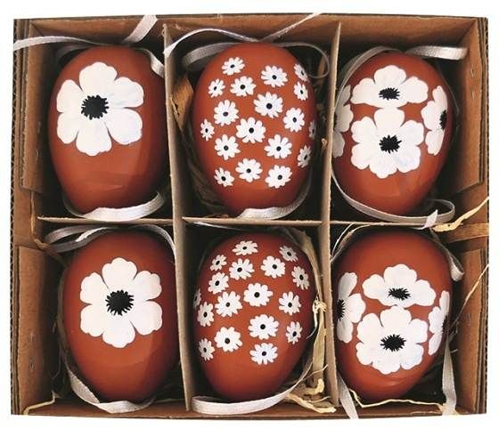 Plastová vajíčka s květinovým dekorem v krabičce Vajíčka využijete k různým dekoračním či aranžérským účelům. Můžete s nimi ozdobit věnce či vazby, nebo je jednoduše zavěsit třeba na větvičku. Svým jemným květinovým motivem v přírodních tónech se budou hodit téměř do každého interiéru či exteriéru. Jedna sada obsahuje 6 kusů vajíček v kraftové krabičce v mixu motivů.