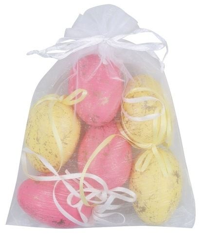 Vajíčka plastová na zavěšení 6 cm, 6 ks v organzovém pytlíku