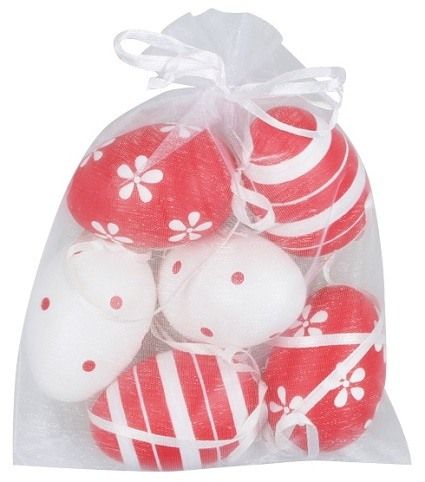 Vajíčka plastová na zavěšení 6 cm, 6ks v organzovém pytlíku