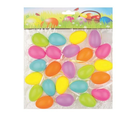 Plastová vajíčka na zavěšení- vhodná k dekorování věnců či vazeb nebo jako závěsná dekorace- 24ks v balení