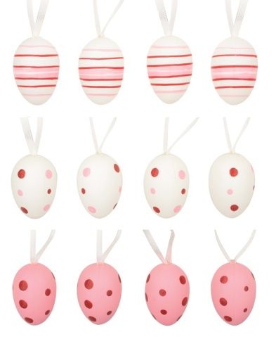 Plastová vajíčka na zavěšení Vajíčka můžete použít ke zdoben věnců či vazeb nebo je můžete jednoduše zavěsit třeba na větvičku. 12 kusů v sáčku, různé motivy.