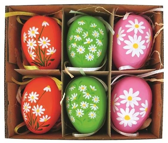 Plastová vajíčka s květinovým dekorem v krabičce Vajíčka využijete k různým dekoračním či aranžérským účelům. Můžete s nimi ozdobit věnce či vazby, nebo je jednoduše zavěsit třeba na větvičku. Svým jemným květinovým motivem se hodí téměř do každého interiéru či exteriéru. Jedna sada obsahuje 6 kusů vajíček v kraftové krabičce v mixu motivů.