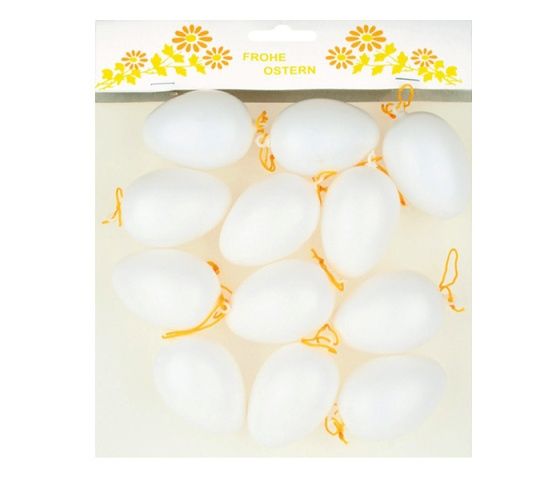 Plastová vajíčka 6 cm bílá, 12 ks v sáčku. Cena za 1 sáček.