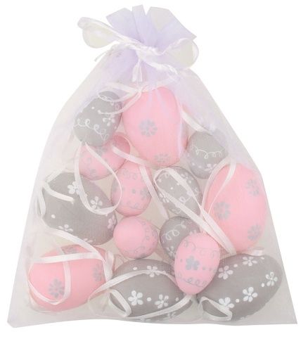 Vajíčka s kytičkami plastová na zavěšení 4 cm, 6 ks + 6 cm, 6 ks v organze