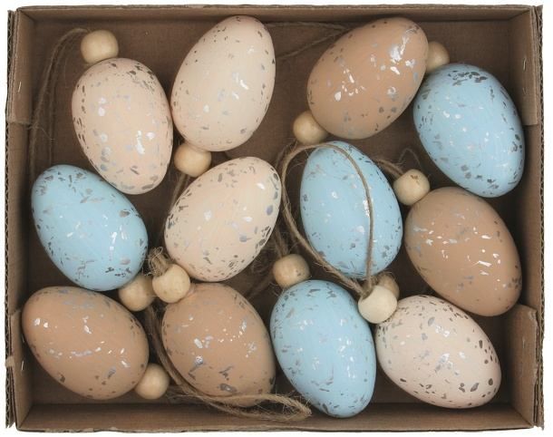 Vajíčka se třpytem plastová na zavěšení 4 cm, 12 ks v krabičce