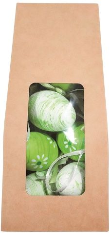 Plastová vajíčka na zavěšení v papírovém sáčku Vajíčka využijete ke zdobení věnců a vazeb nebo je můžete jednoduše zavěsit na větvičku. 6 kusů v balení, mix v zelených odstínech.