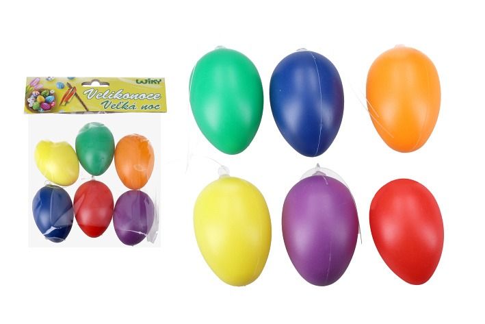 Vajíčko dekorační plastové barevné na zavěšení 6 cm, 6ks