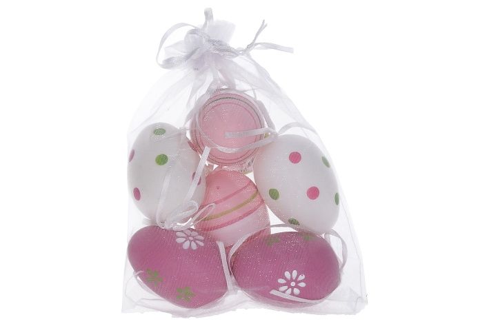 Vajíčko dekorační plastové malované 6 cm, 6ks v organza sáčku