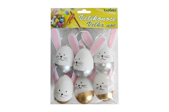 Vajíčko dekorační plastové malované na zavěšení 6 cm, 6ks