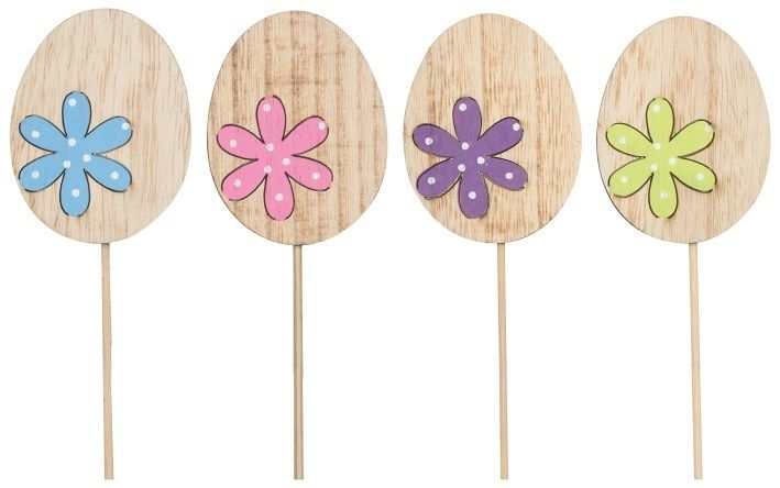 Vajíčko dřevěné s kytičkou 8 cm + špejle