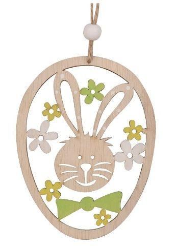 Vajíčko dřevěné se zajíčkem na zavěšení 10 cm