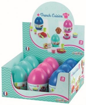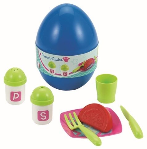 Vajíčko s překvapením v podobě jídelního setu, 3 druhy. Velikost vajíčka 11 x 15 x 11 cm. Prodej pouze po displejích!!!!