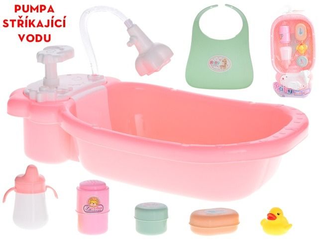 Vanička 32cm s pumpou stříkající vodu s doplňky v síťce