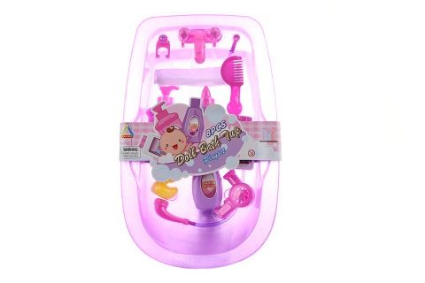 Vanička s doplňky. Materiál plast. Balení obsahuje vaničku o velikosti cca 39x24,5x8 cm, hřebínek, fén, kačenku do vody, sprchu, lahvičku na pudr, lahvičku na šampon a lahvičku na pití pro panenku. Věk 3+