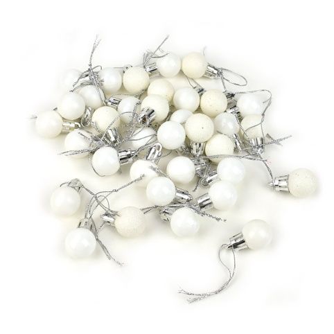 Vánoční baňky, bílé, 2 cm, 36 ks