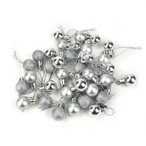 Vánoční baňky, stříbrné, 2 cm, 36 ks