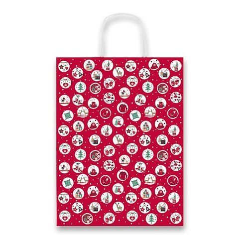 Dárková papírová taška laděná do červené barvy s atraktivním vánočním motivem.