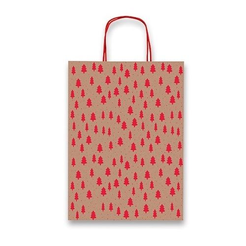 Vánoční papírová taška SADOCH Kraft Natale L stromky červená