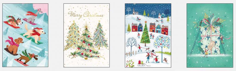 Vánoční stromky se zlatým nápisem Merry Christmas