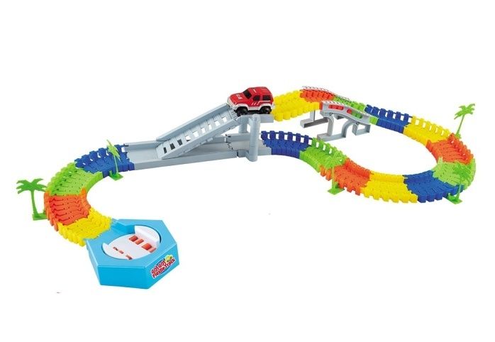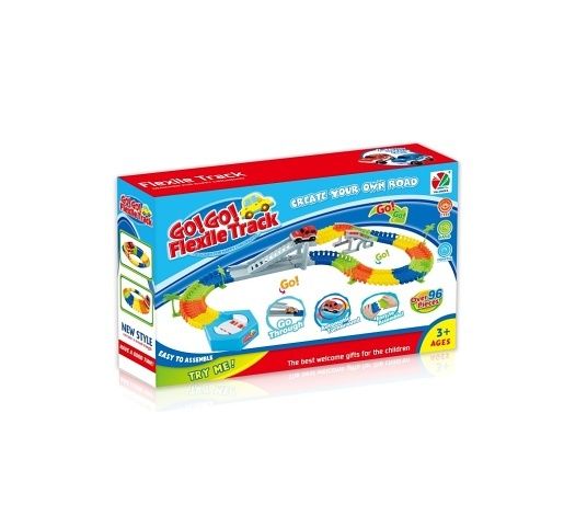 Variabilní dráha obsahuje 96 dílů, součástí je jedno autíčko. Provoz na 2×1,5V AA tužkové baterie – nejsou součástí. Jednoduché na sestavení. Šířka kolejnice: 7,8 cm. Tvoř si své vlastní cesty. Na baterie: 2x AA (nejsou součástí balení)