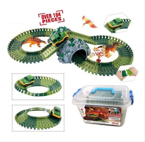 Variabilní dráha s dinosaury a tunelem, která má 104 dílů.