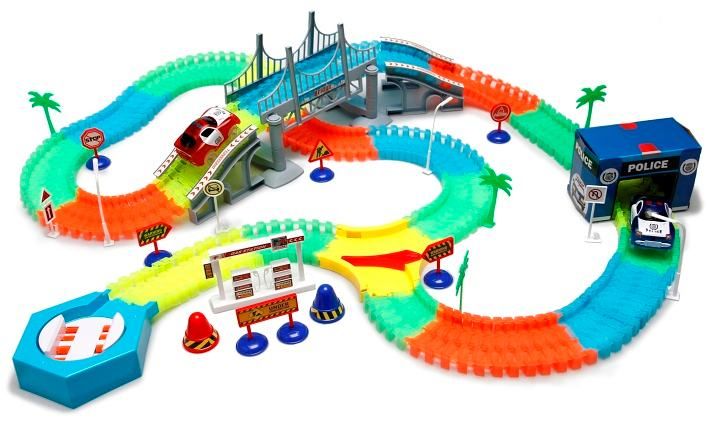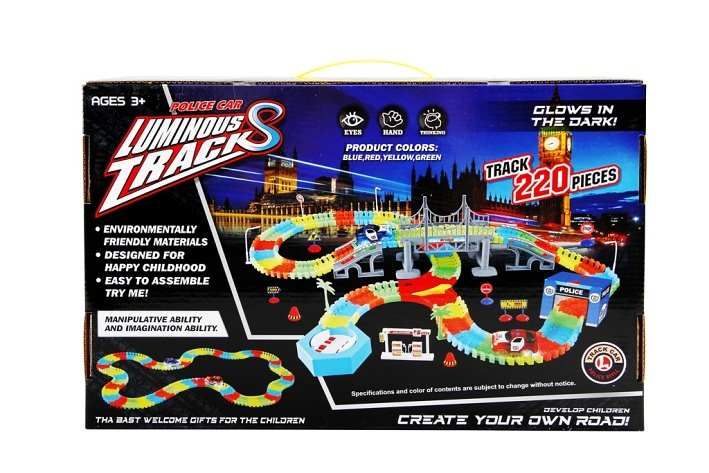 Variabilní dráha svítící ve tmě 220 dílů + autíčko s LED světlem
