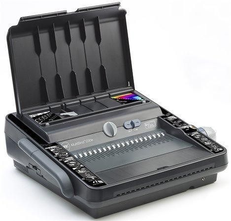 Víceúčelový vazač MultiBind 230 je určen pro děrování a vázání do plastových i kovových hřbetů dokumentů formátu A4 nebo A5.